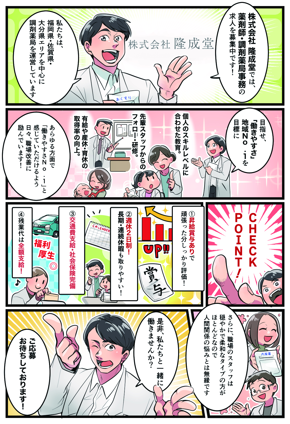 株式会社隆成堂では、薬剤師、調剤事務員の方を募集しています。