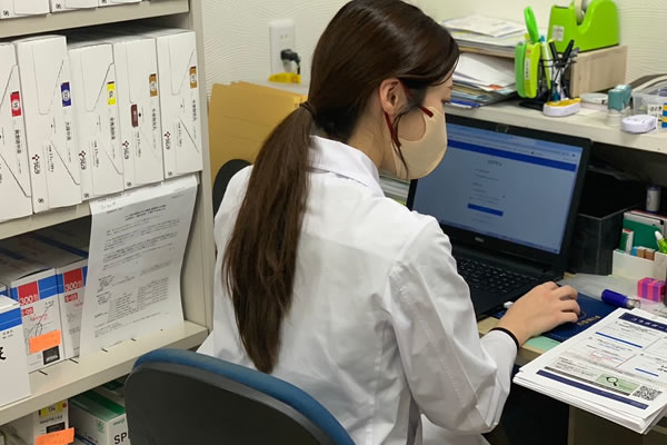 午後も引き続き外来対応。在庫確認や発注業務なども行います。 -